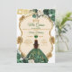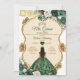 Elegant Emerald Green & Gold Crown Quinceañera Invitation