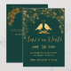 Elegant Emerald Green & Gold Floral Birds Save The Date