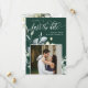 Elegant Emerald Green Leaves QR Code Photo Wedding Save The Date