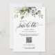 Please note: The elegant calligraphy of the wording phrase "Save the Date" and "formal invitation to follow" wording along with along with the watercolor greenery foliage eucalyptus leaves arrangements and other graphic artwork and elements cannot be edited, deleted, or moved. They are fixed.