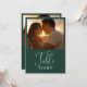 Personalised with your special photo, these emerald green elegant script double-sided table numbers are perfect for all celebrations. Designed by Thisisnotme©