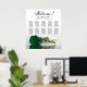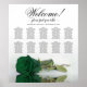 This sophisticated wedding seating chart showcases a beautiful design that includes a single long-stemmed deep emerald green coloured rose lying on its side and reflecting in a pool of water. The title reads "Welcome - please find your table" in an elegant font, with the names of the couple and the wedding date displayed below. With 10 tables and space for 100 names, this chart accommodates 10 people per table, making it simple for your guests to locate their seats. This design is both romantic and chic, adding grace and class to your wedding reception.