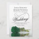 This beautiful wedding invitation features a gorgeous photograph of a single long-stemmed emerald green coloured rose lying on its side reflecting in a pool of water with waves and ripples. The design features a fancy calligraphy script with a long curly tail making it both modern and classic. Elegant, sophisticated and chic way to invite your friends and family to share in your special day. The back of the card is a marbled deep forest or emerald green colour with a plush pattern.