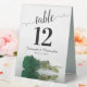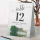 These tent signs will not only help your guests find their tables, they'll also make your wedding reception more beautiful. The design is both elegant and romantic featuring a single emerald green coloured rose lying on its side reflecting in water with waves and ripples. The title is in lacy script calligraphy with bold numbers so your guests can easily find the right table. There is room for the names of the couple and the wedding date.