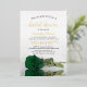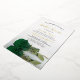 This beautiful bridal shower invitation features a gorgeous design with a single long-stemmed emerald green coloured rose reflecting in a pool of water. The elegant script calligraphy lettering includes black text interspersed with real pressed foil gold accents. Elegant, classy, sophisticated and chic, these invitations are a wonderful way to celebrate the bride to be.