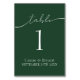 Elegant Emerald Green Script Wedding Table Number sign to create a fun modern table setting for a classic wedding. Personalise it on the front and back.
