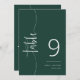 This elegant wedding table number features an elegant calligraphy and simple sans serif typography font for a clean minimalist and modern look in an emerald green background, which is a beautiful way to help your guests find their seat/table. The simplicity of this design adds a touch of elegance to your wedding. It works well with many wedding themes and definitely a great addition to your wedding stationery. Just customise the names. wedding/event date, and table number in a few easy steps and personalise it to give it a nice personal touch.