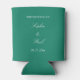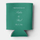 Elegant Emerald Green Wedding Favour Can Cooler, please personalise the names of the bride and groom and the wedding date using the online personalisation template before ordering. The text automatically copies across to the other side of the can cooler so that both sides display identical text.