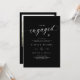 Set the stage for a stylish celebration with these modern black engagement party invitations featuring elegant white script typography. The minimalist design blends simplicity and sophistication, while the couple’s photo on the back adds a personal touch. Perfect for hosts planning a chic, contemporary engagement party that feels both elegant and timeless.