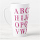 Elegant English Alphabet in Pink Floral Lettering Latte Mug