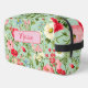 This trendy, monogrammed floral toiletry bag can be personalised with your name or initials.  It's perfect for carrying cosmetics for quick touchups during the day or for a weekend away. The bag has a fresh, colourful pattern of pink, white and red flowers against a pale blue green background.  To personalise it just use the "Personalise this design template" box on the right hand side of the listing or you can use the "Customise it" button to change the colours and fonts if you wish.  If you are looking for another product with this floral pattern and don't see it, please message me here and I would be happy to create it for you.