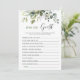 Elegant Eucalyptus Floral Bridal Shower Game Card