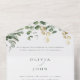 Perfect for garden, vineyard, or outdoor weddings, this all-in-one folded mailer includes your invitation and a detachable RSVP postcard—no envelopes needed. The lush eucalyptus design and elegant typography create a serene, organic aesthetic that suits any season, from spring to winter weddings.