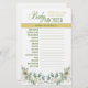 This baby shower game measures 5.5" x 8.5", is easy to write on, and an elegant and fun addition to your event. It features a word scramble - ready to go - although you are welcome to create your own words if you choose, and holds a soft watercolor design of eucalyptus leaves (green and gold) with bold font spelling the word baby shower. Other text is easy to update.