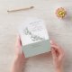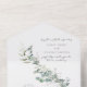 This unique botanical design features a curving branch of elegant watercolor eucalyptus leaves with artistic silver outlined leaves and white wildflowers.
