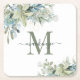 Elegant Eucalyptus Greenery Floral Monogram Square Paper Coaster