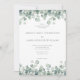 This elegant wedding invitation features hand-painted eucalyptus greenery on a clean white background, creating a minimalist botanical look. Perfect for rustic, garden, outdoor, or nature-themed weddings. Personalise it easily for your special day.