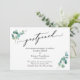 If your wedding plans have unavoidably changed, this simple, elegant card could be the perfect option for you. Featuring a luxury calligraphy font, the header reads "postponed". Everything else is versatile and can be edited: change the supporting font or colours. Corners are accented with sprigs of watercolor eucalyptus leaves. Use the template fields to add your personal details. // 137 //