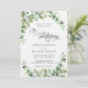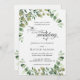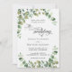 Beautiful eucalyptus wedding invitation with script typography. Elegant hand-painted watercolor leaves in soft pastel greens. Easily edit the template with your wedding details. Elegant Eucalyptus Wedding Invitation.