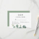 Minimalist Greenery Design RSVP card. This elegant wedding RSVP card features a minimalist design with soft watercolor eucalyptus greenery, perfect for modern, rustic, or botanical-themed weddings. Featuring a clean layout with customisable guest response options, this card coordinates beautifully with a wide range of wedding stationery. Personalised with the couple's names and a tasteful green backing, it's ideal for couples looking for a simple yet refined response card to match their wedding aesthetic.