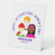 Celebrate IWD (International Women's Day) on March 8th with this pedestal sign, which features a trio of colourfully attired women on this special day in elegant block lettering.