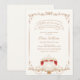 "Little princess is on the way" baby shower theme, the perfect way to celebrate the new baby on the way with a fairytale princess themed baby shower. Perfect for a girl baby shower, design features ivory gold red vintage magic pumpkin carriage theme with gold elegant vintage frame on beige background, Personalise this baby shower invitation by adding names, date, time, venue and other details.