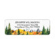 Personalised text/name labels with watercolor painted autumn landscape with mountains and forest.