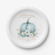 Elegant Fall Blue Pumpkin Floral Boy Baby Shower Paper Plate