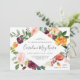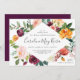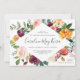 This elegant floral bridal shower invitation features a lovely watercolor flower frame and pretty script calligraphy. The autumn floral arrangement includes burgundy and blush pink roses, rust-coloured dahlias, burnt yellow flowers, and dusty green leaves. The shower honoree's name is written in lovely calligraphy lettering. The registry information is uniquely placed in the corner of the invitation.