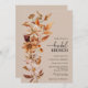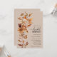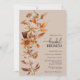 This elegant and rustic fall bridal brunch invitation features hand-painted watercolor burnt orange and terracotta leaves, cream and beige dahlias, and beautiful rust-coloured roses perfect for an autumn wedding! The back of the invite has a simple taupe background with a coordinating bouquet.