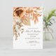This modern and trendy Elegant Fall Floral Terracotta Wedding Invitation boasts a rustic charm that perfectly captures the essence of a fall wedding. The warm burnt orange terracotta botanical design is beautifully adorned with delicate watercolor flowers in shades of orange, yellow, blush, and white. The floral design is artfully arranged to create a romantic and whimsical feel that sets the tone for your special day. The text is elegantly written in a classic font, providing a timeless touch to the design. Your guests will be delighted to receive this invitation and will be impressed with the attention to detail and care that went into choosing it. With its charming boho-themed design and warm hues, this invitation is sure to evoke the cosy feelings of autumn and make your wedding day unforgettable. Order yours today and let the beauty of this invitation set the stage for a magical celebration!