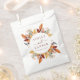 Elegant Fall Leaves Autumn Wedding Favour Bag features a beautiful bouquet of autumn leaves in rust, yellow, gold, mustard, brown and purple.