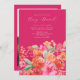 Elegant fall terracotta boho floral photo wedding invitation featuring pretty bohemian and rustic flowers in earth tone colours, terracotta, pink , green and brown with an elegant romantic brush script font typography on dark pink. Add your photo at the back. Perfect for small casual boho wedding ceremony.