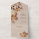 This elegant all-in-one wedding invitation features hand-painted watercolor burnt orange and terracotta leaves, cream and beige dahlias, and beautiful rust-coloured roses on a taupe | beige background. RSVP with meal choice is included with this stylish invite. Find matching items in the Taupe Autumn Romance Collection.