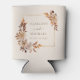 Elegant Fall Wedding Can Cooler. This elegant and modern wedding can cooler features hand-painted watercolor burnt orange and terracotta leaves, cream and beige dahlias, and beautiful rust-coloured roses on a taupe | beige background with the bride and groom's names and wedding date on both sides. Find matching items in the Taupe Autumn Romance Collection.