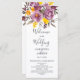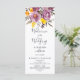 Elegant fall winter purple floral wedding program featuring a modern and elegant calligraphy the wedding of Script in purple, orange and yellow flowers with sage green foliage.