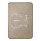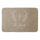 Elegant family monogrammed chic rustic country farmhouse style ochre beige burlap bath mat with name and established year. +++++++ A modern keepsake gift for weddings, anniversaries, housewarmings, Thanksgiving, Christmas, or any other occasion.