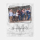 Personalised family fleecy blanket featuring a elegant marble background, a cute family photo with 2 grey borders that can be removed, your family name & monogram, and a positive quote that reads "family is anyone who loves you unconditionally".