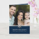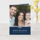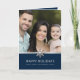 Send your warmest wishes this holiday season with this elegant Family Photo Holiday Card. The front showcases your cherished family photo framed by a metallic silver border and captivating snowflake, while a navy blue banner below reads "Happy Holidays with Warm Wishes." Inside, the magic of the season continues with a customisable message expressing joy, love, and cherished moments, signed with your family's script signature. The back features a small snowflake for design continuity. Create a personalised and memorable greeting that captures the spirit of the holidays. Perfect for sharing love and joy with your loved ones.