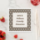 Personalise your family reunion dinner or picnic with these personalised napkins. The polka dot pattern features elegant silver circles against a dark brown background. A large rectangle in the centre features brown and beige colours and provides a solid background for your personalised reunion information. Quickly and easily customise the year and your family name.
