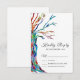 These stylish RSVP cards are decorated with a family tree in the colours of the rainbow.
