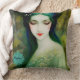 Elegant Fantasy Woman Portrait in Green and Blue Cushion