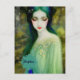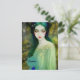 Elegant Fantasy Woman Portrait in Green and Blue Postcard