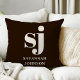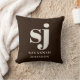Elegant farmhouse brown monogram initials cushion