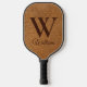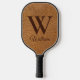 Elegant Faux Brown Leather Monogrammed Initial Pickleball Paddle