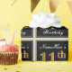 This simple and elegant wrapping paper design features a personalised message like "NameHere’s 11th Birthday" (with the "11th" having a faux/imitation gold-like colouring look) within a black-coloured square area featuring a simple border outline. The name is in an elegant white-coloured script-like text, and can be customised. Wrapping paper like this could perhaps be used when wrapping birthday gifts for somebody who is celebrating their eleventh birthday. [~Z0000217]