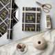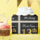 This simple and elegant wrapping paper design features a personalised message like "FirstName’s 13th Birthday" (with the "13th" having a faux/imitation gold-like colouring look) within a black-coloured square area featuring a simple border outline. The name is in an elegant white-coloured script-like text, and can be customised. Wrapping paper like this could perhaps be used when wrapping birthday gifts for somebody who is celebrating their thirteenth birthday. [~Z0000217]