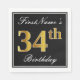 Elegant, Faux Gold 34th Birthday + Custom Name Napkin