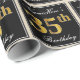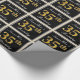 This simple and elegant wrapping paper design features a personalised message like "NameHere’s 35th Birthday" (with the "35th" having a faux/imitation gold-like colouring look) within a black-coloured square area featuring a simple border outline. The name is in an elegant white-coloured script-like text, and can be customised. Wrapping paper like this could perhaps be used when wrapping birthday gifts for somebody who is celebrating their thirty fifth birthday. [~Z0000217]
