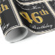 This simple and elegant wrapping paper design features a personalised message like "Name-Here’s 46th Birthday" (with the "46th" having a faux/imitation gold-like colouring look) within a black-coloured square area featuring a simple border outline. The name is in an elegant white-coloured script-like text, and can be personalised. Wrapping paper like this could perhaps be used when wrapping birthday gifts for somebody who is celebrating their forty sixth birthday. [~Z0000217]